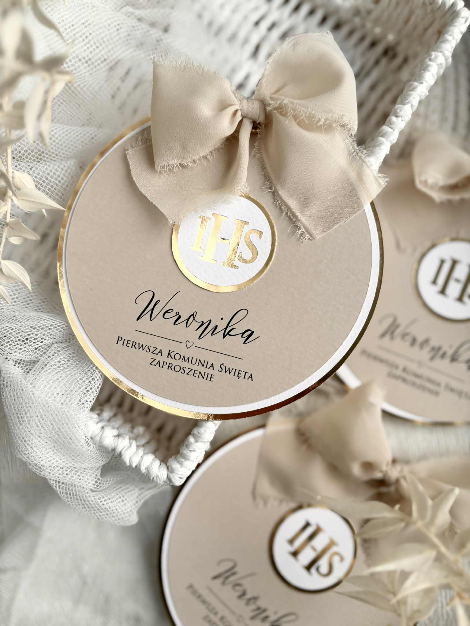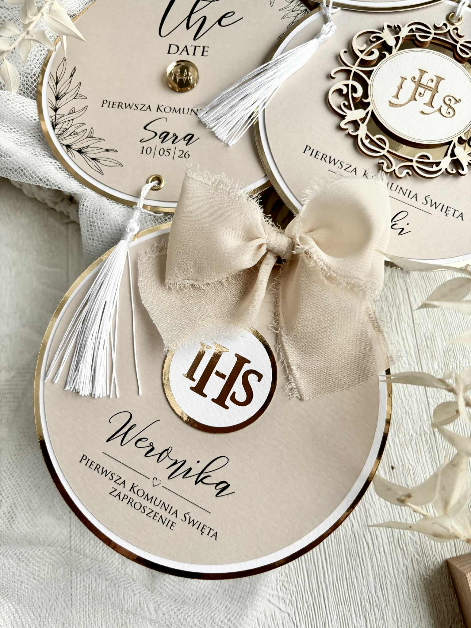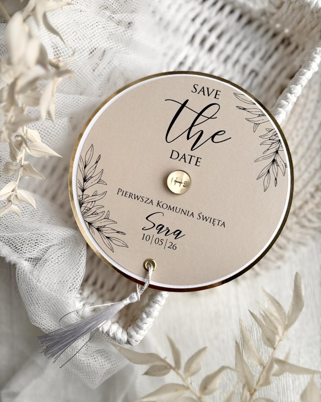 warstwowe zaproszenie w kształcie koła.