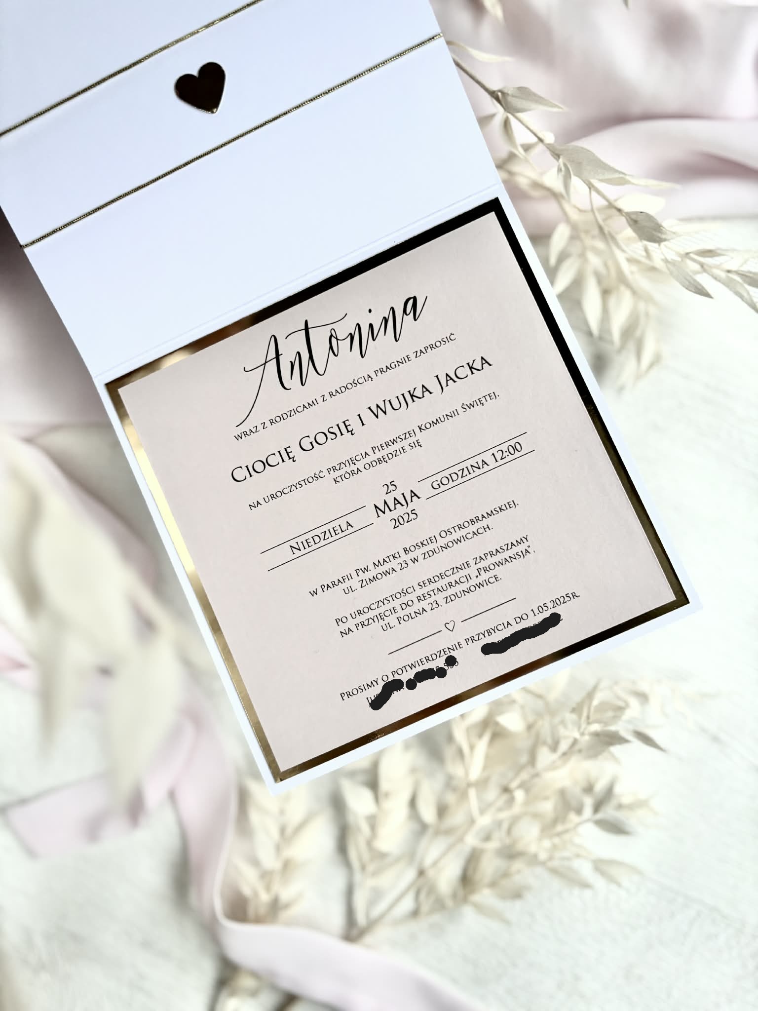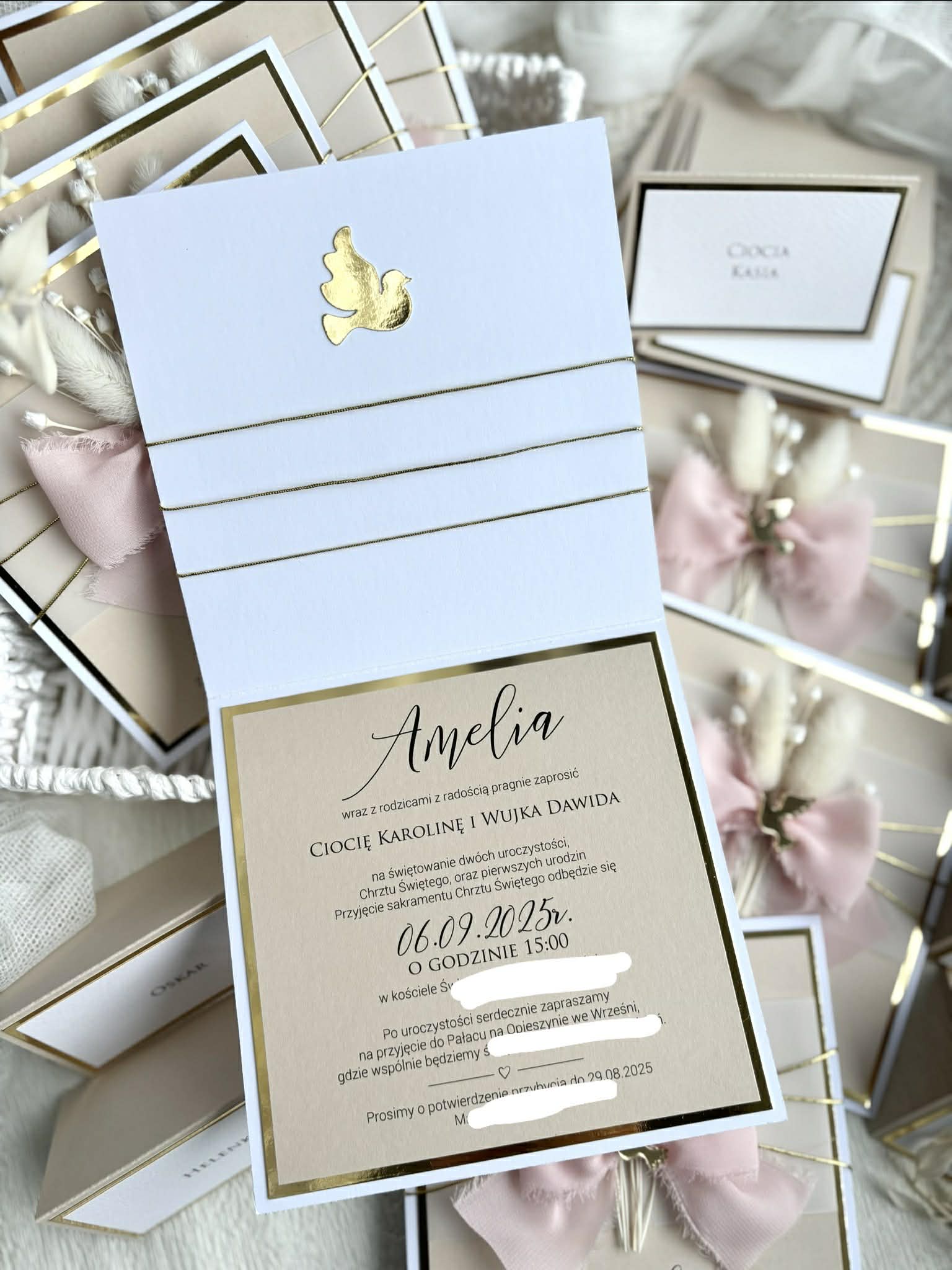eleganckie otwierane zaproszenia ze zdobioną okładką.