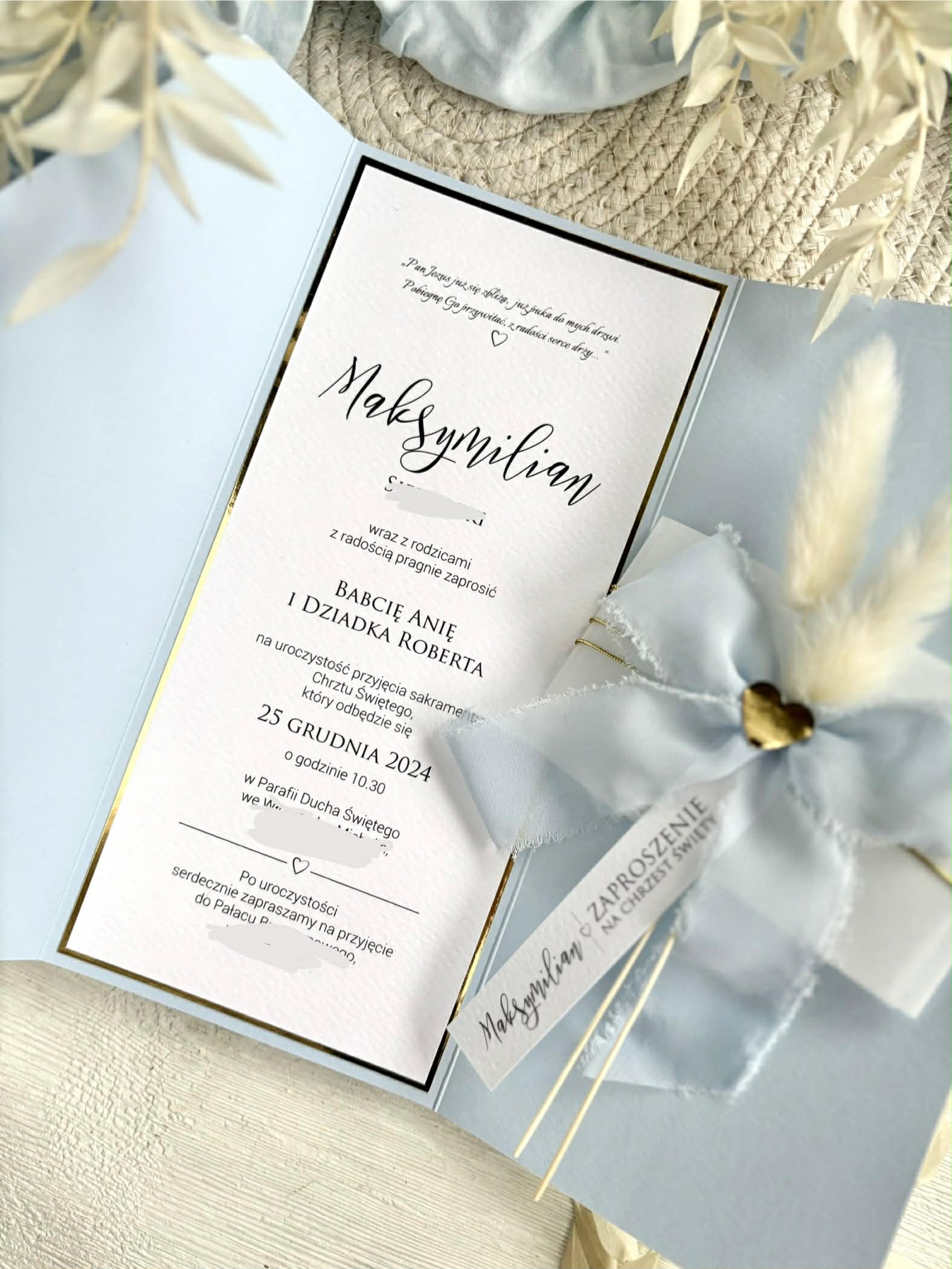Każde zaproszenie można dowolnie spersonalizować, dodać, zamienić lub odjąć elementy – jeżeli wybrany wzór ich nie posiada możesz dobrać: